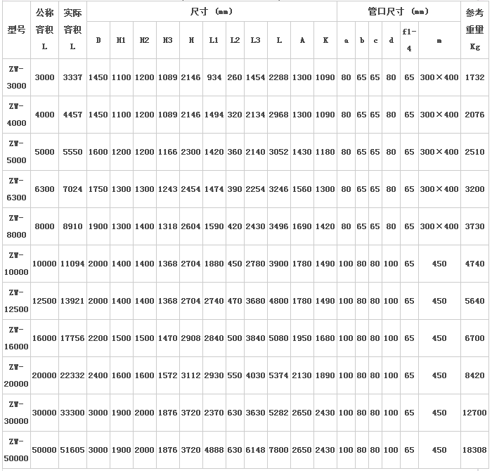 6.ZW系列儲(chǔ)罐主體尺寸符臺(tái)HG/ T2371-92. GB:T 25027-2010標(biāo)準(zhǔn),并在此基礎(chǔ)上進(jìn)行了改進(jìn)。